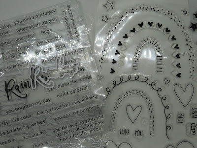 Next are the stamps, the rainbow embellishments stamps, the rainbow word stamps and the Rainbow die. Some of the 'Rainbow words are embossed, some are foiled.